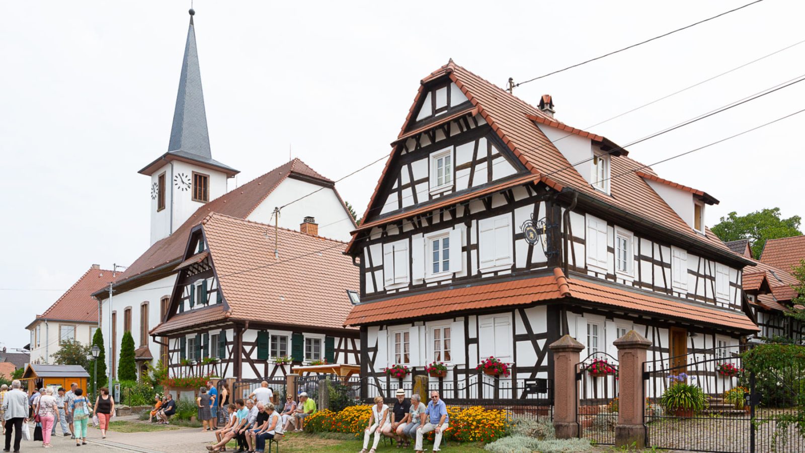 Les maisons de Seebach sont systématiquement blanches, ce qui leur confère une grande dignité dans cet habit de cérémonie relevé par le noir des poutres. On notera qu’ici, elles ne se sont jamais parées des bleus profonds, des verts ou des rouges sang des maisons plus anciennes voire médiévales, tout juste parfois, une petite touche de bleu de méthylène dans le blanc.