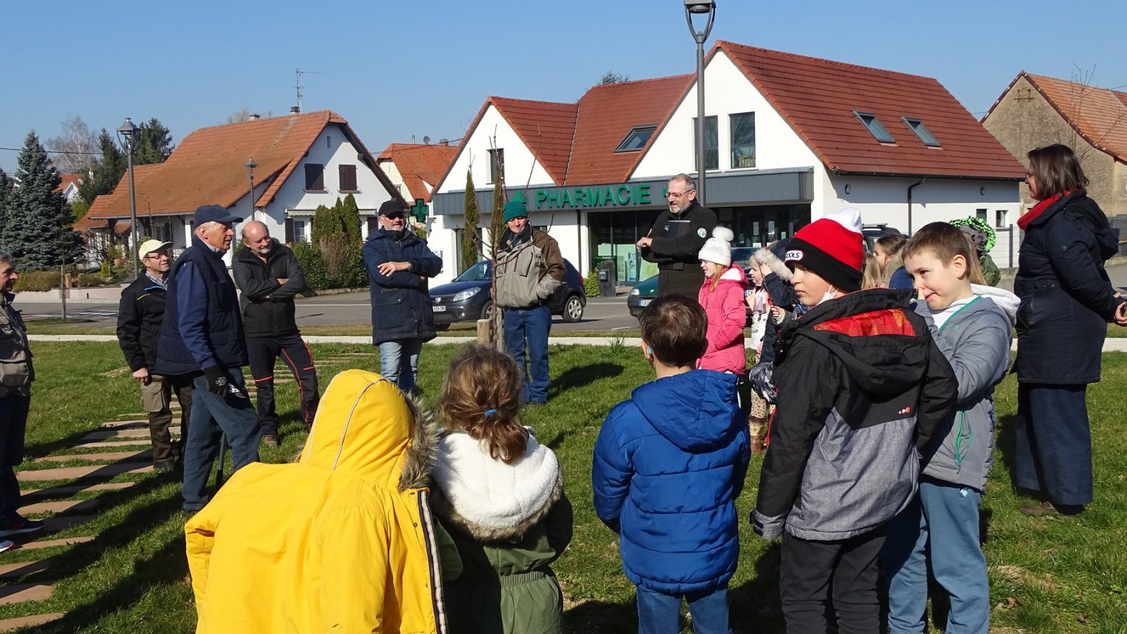 C’est dans cet esprit que notre conseil municipal a décidé d’installer stratégiquement un verger école dans le « cœur du village ». L’intégration des enfants à ce projet s’est faite naturellement, puisque trois classes de l’école élémentaire (66 enfants et leurs enseignants) ont pu mettre la main à la pâte avec le soutien des arboriculteurs du Pays de Wissembourg.