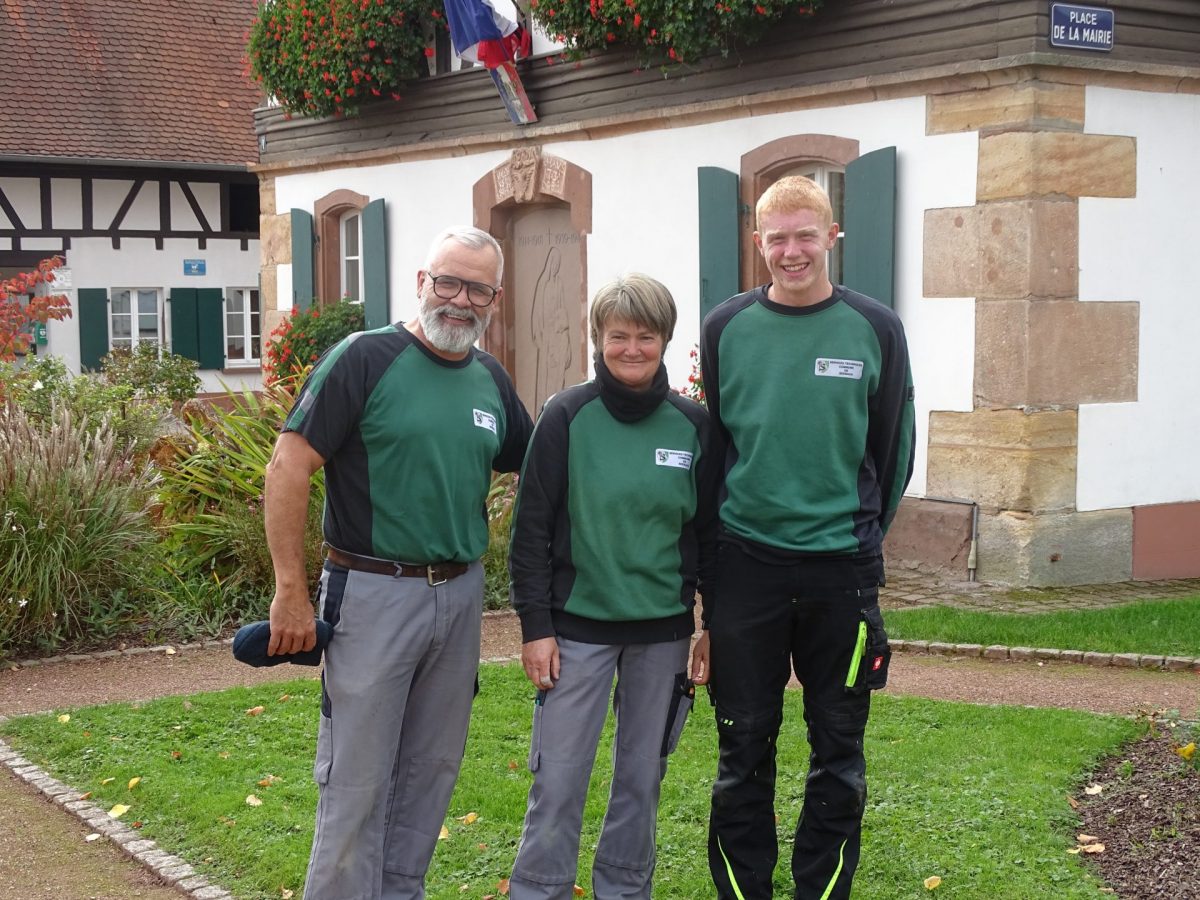 1er rang : Sonia Muller (service entretien) Gwenola Ballier (secrétaire comptabilité et administrative) Roger Treger qui a fait valoir ses droits à la retraite à la mi-octobre 2025 et est actuellement remplacé par Enzo Gey (services techniques)